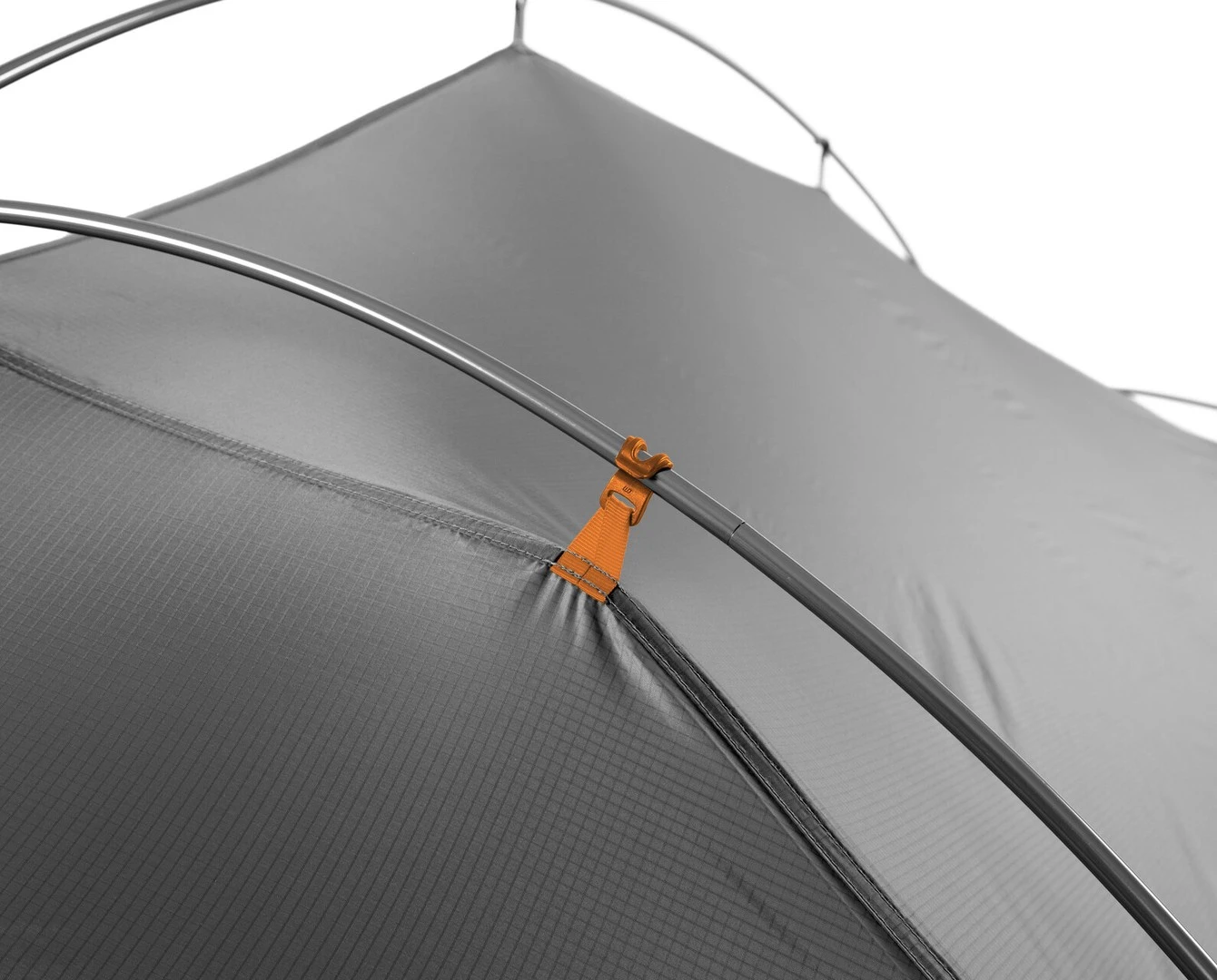 La configuration de cette tente avec des arceaux externes en exostructure permet une mise en place rapide. Vous pouvez monter la tente entière ou uniquement le double-toit. La chambre intérieure peut ou non être montée en simultanée avec le double-toit.