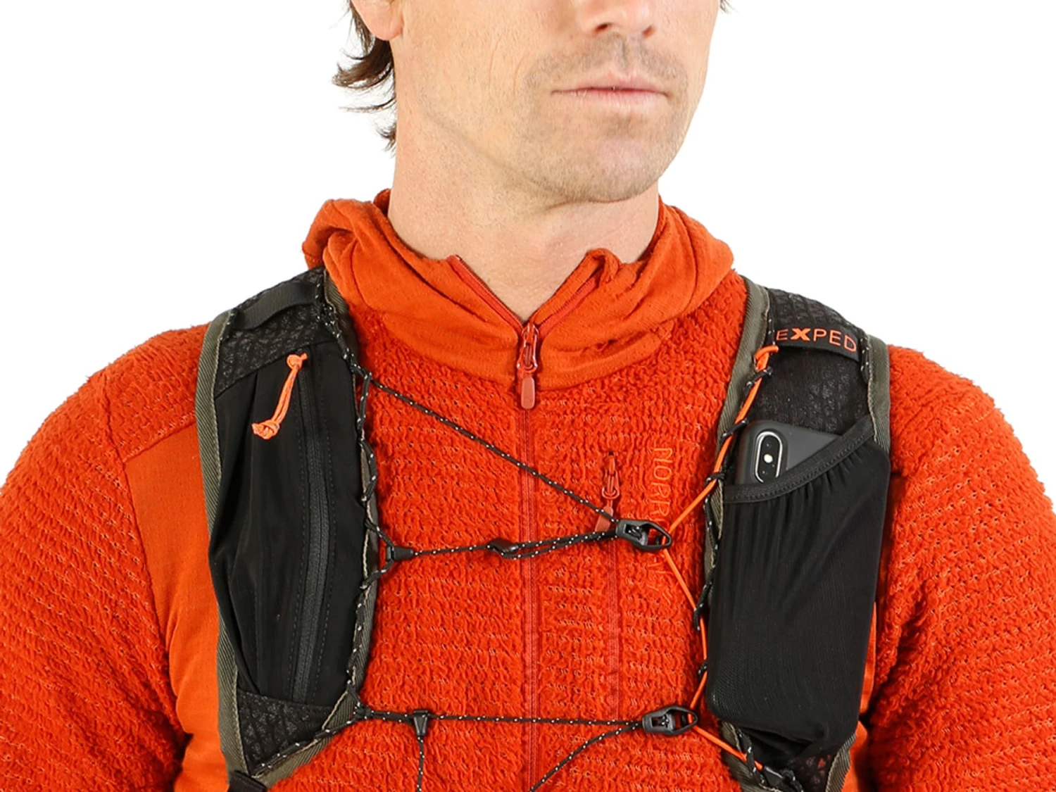 Sur les bretelles, vous trouverez d’un côté une petite poche en mesh ouverte pour y mettre votre GPS, votre téléphone ou glisser votre tube d’hydratation, de l’autre, une poche en mesh zippée pour y mettre des barres de céréales et autres snacks.